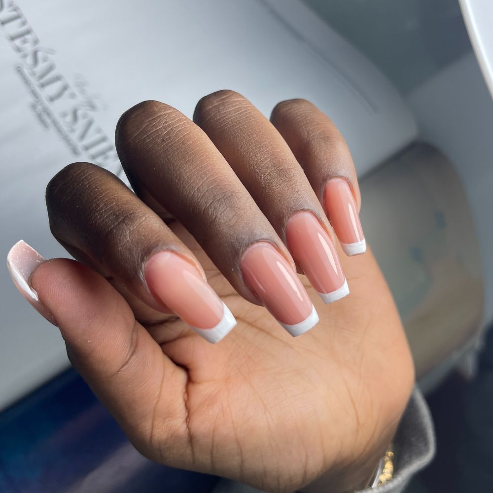 לאחר הכנת הציפורן, שיוף צורה ומניקור נמרח שכבה דקה של פאוור/אפקס בייס ונייבש במנורה.
