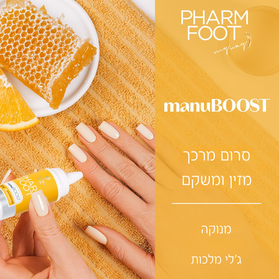 manuBOOST – סרום הזנה וחידוש לציפורניים מועשר בדבש מנוקה וג’לי מלכות – 15 מ"ל .