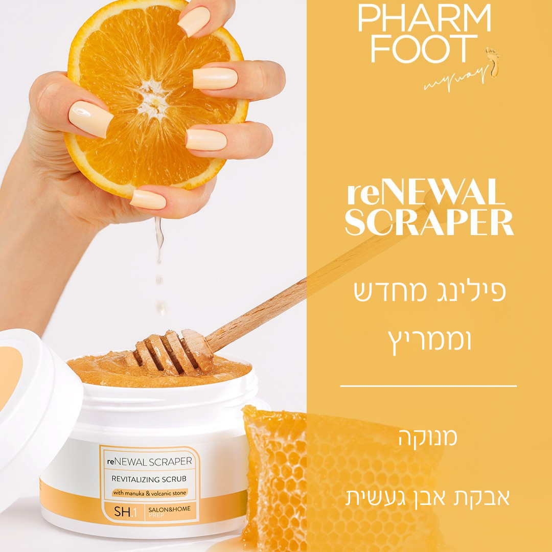 reNEWAL SCRAPER – קרם פילינג ממריץ לחידוש עור יבש, מועשר בדבש מנוקה ובאבקת אבן געשית טבעית (הסרת תאים מתים) – 200 גרם .