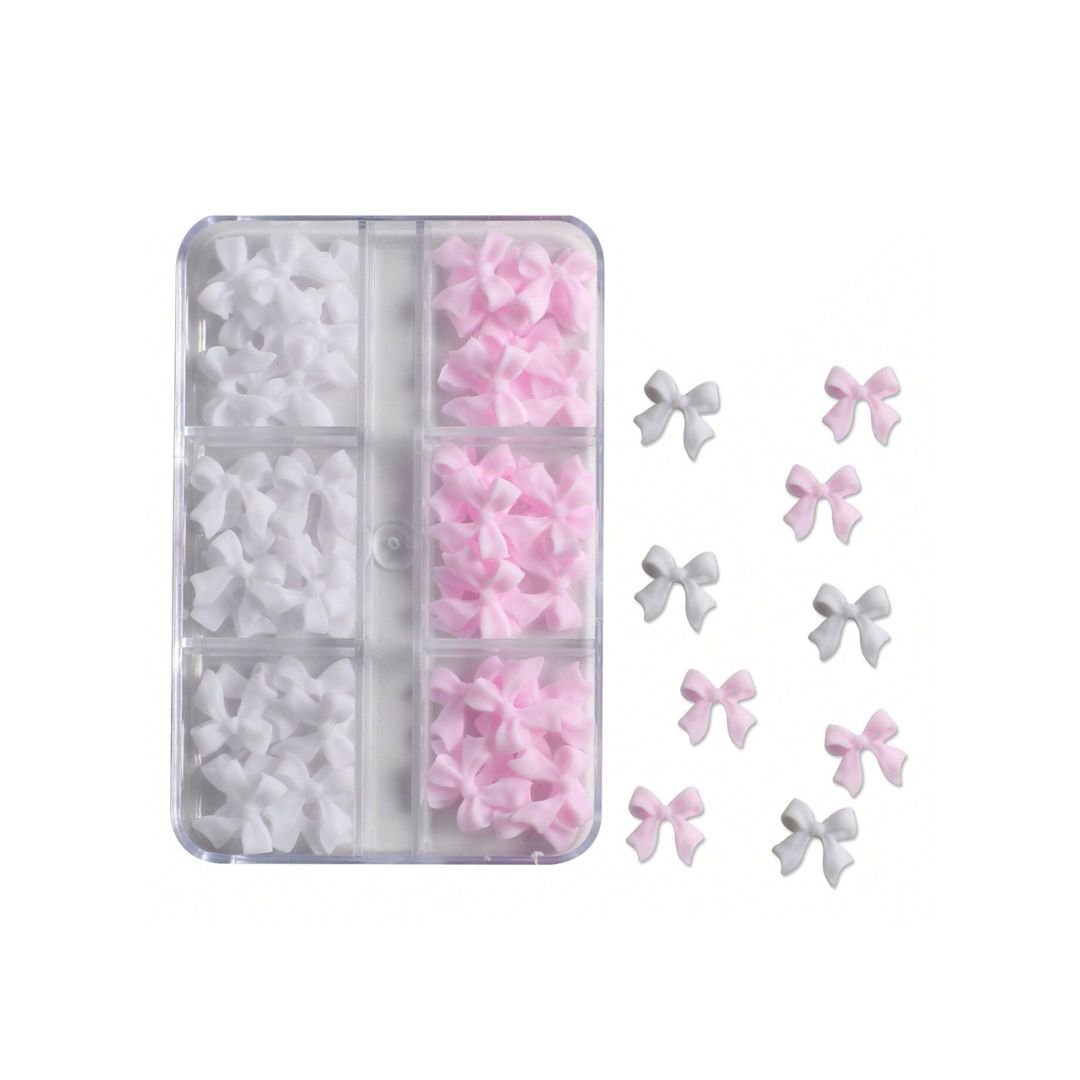 מארז קישוטים 48 יח' צ'ארמים פפיון – לבן & ורוד