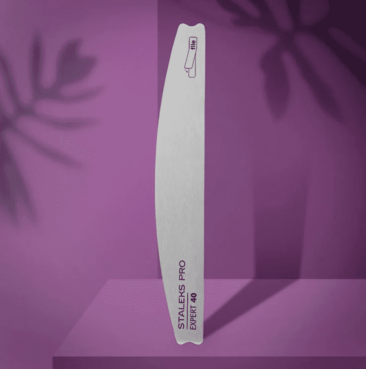 פצירה חצי ירח מבסיס מתכתי מבית Staleks Pro Expert מציעה פתרון עמיד ומקצועי לשיוף הציפורניים.