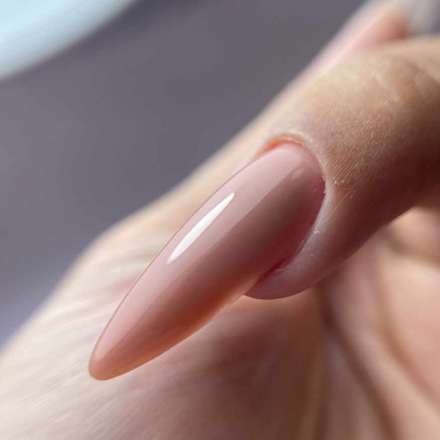 לאחר הכנת הציפורן, שיוף צורה ומניקור נמרח שכבה דקה של פאוור/אפקס בייס ונייבש במנורה.