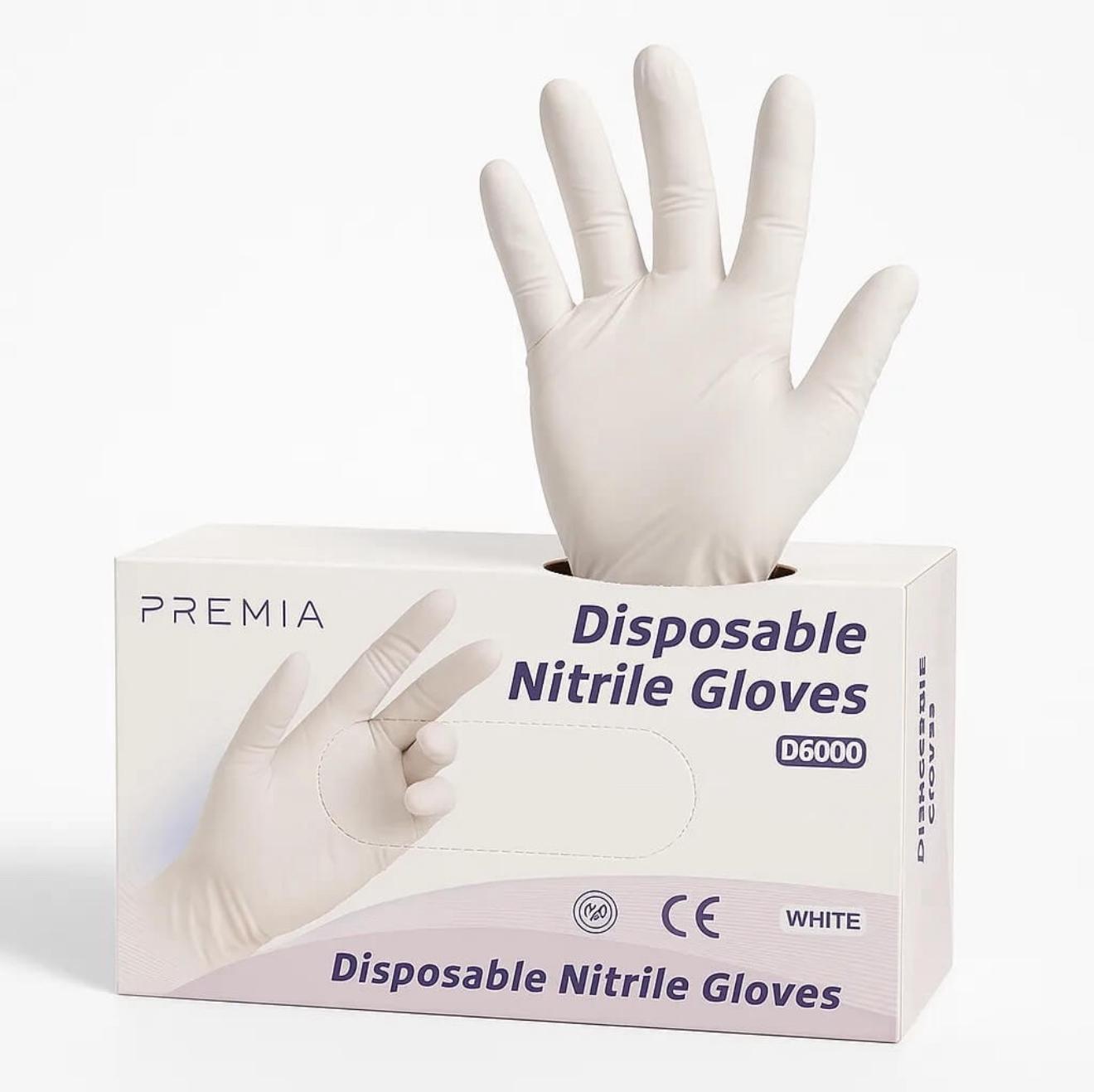 כפפות ניטריל לבנות עבות וחזקות 6 גרם | מידה S