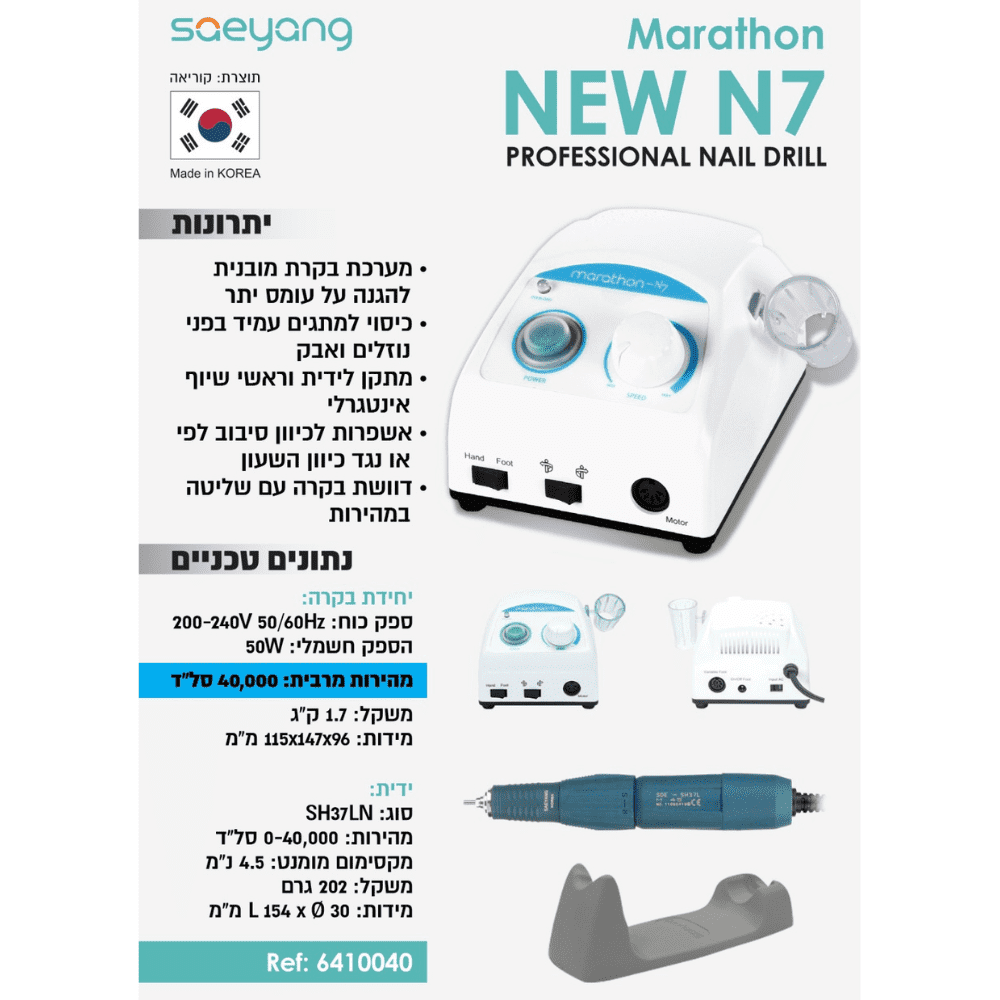 מכונת שיוף מרתון N7 | מותאמת לפדיקור | 40K