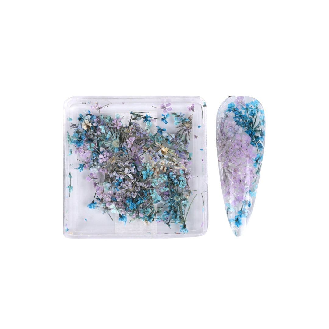 קישוטי ציפורניים – פרחים קטנים יבשים | ירוק & כחול